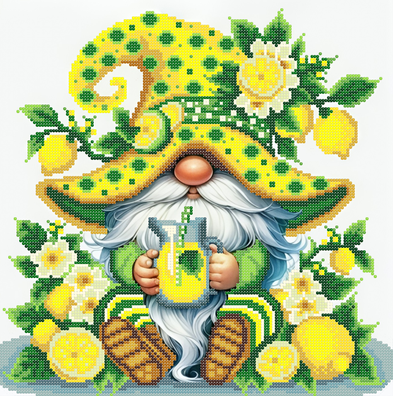 Схема для часткової зашивки бісером ,, Гномік Лимончик,, Розмір схеми 30*30 Кольорів бісера 15 тканина Габардин Бісер рахується окремо і підбирається за бажанням покупця