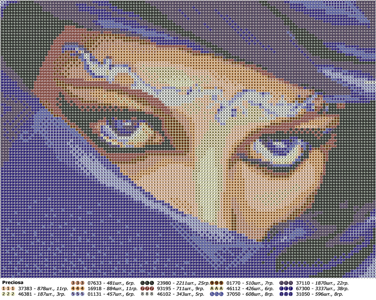 Сб-4-222 Взгляд. Глаза цвета индигоСхема полной вышивки бисером.